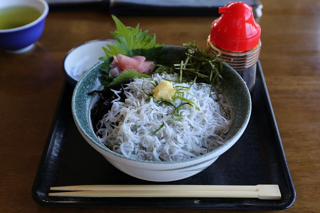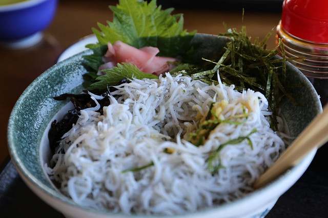 しらすは塩味が薄く、なるほど、醤油が必要な訳だ。スーパーで売っているしらすと比べるとかなり塩味が薄く、大ぶり。