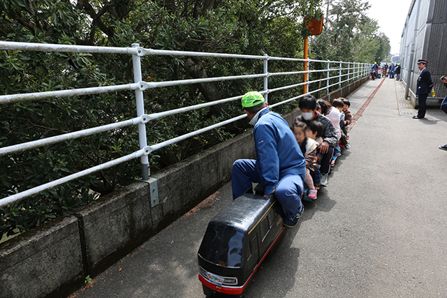 さて腹ごしらえもしたので、イベントに繰り出します。まずは電気設備車両の乗車体験。係のおじさんが丁寧に説明してくれます。走りませんが、クラクションは鳴らせたり。