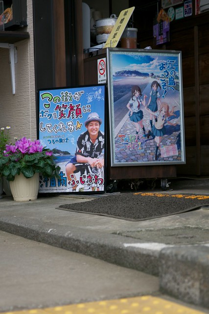 ところで最近観光地にはしばしば「カメラ台」を見かけますが、江ノ島にも今年からいくつか設けられたようです。そこで面白いのが、「スマホスタンド」が付いていること。最初何の溝かと思ったんですが、ああ、これは考えましたねぇ。