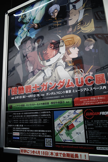 ガンダムフロント東京で開催中の「ガンダムUC展」が18日で終了してしまうと言うので、期間中最後の休日と言うこともあり見てきました。
