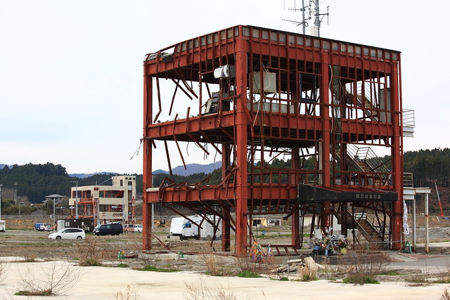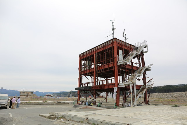 防災庁舎に到着。最後まで避難を呼びかけていた遠藤未希さんをはじめ、数多くの職員が命を落とした現場です。ちなみに津波に飲み込まれる瞬間の、屋上からの写真がPDFファイルで公開されています。こちらの一番下です。