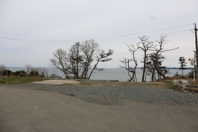 木がなくなった山。右手が海なので、津波…という訳ではなさそうです。