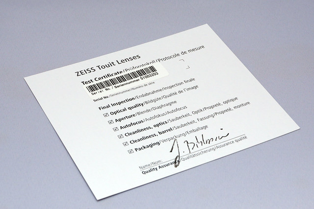 そしてZeissレンズと言えば、肉筆サイン入り検査票でしょう。