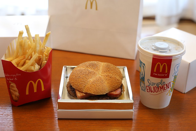 食べた感じですが、確かに今までのマクドナルドとはまったく別次元で、普通にちゃんとしたレストランで食べるハンバーガーに近いものがあります。ベーコンのスモークに使うチップまで専用配合というのだから、恐れ入ります。ただ、ハンバーグ自体は一般的なクオーターパウンダーと同じではないかな?と感じました。