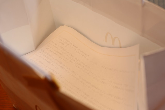 ご馳走様でした。結局紙袋は使わなかったです。マクドナルドを食べて胸焼けしないのはなかなか新鮮な感覚です。