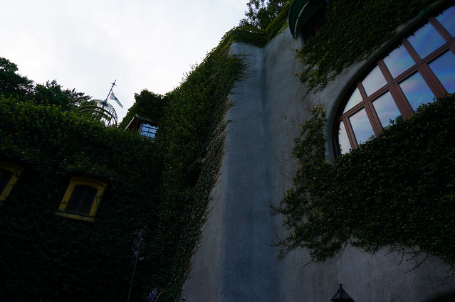 建物の中はもちろん撮影禁止。美術館だから…という訳ではなく、カメラのファインダーを通してではなく、直に感じて、思い出は心の中にとどめておいて欲しい…という宮崎駿氏の意図に基づくものです。ジブリ作品が当初パッケージメディア化に難色を示されたのと同じ理由ですね。