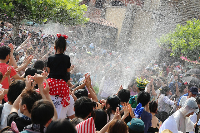 にしても、多くの観客を屋外に配置せざるを得ないディズニーリゾートで、熱中症などの患者を出さないためとも思いますが、こういった物理の原点のような方法が採られるとは…。
