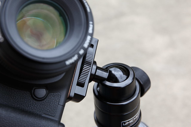 そうそう、あと梅本雲台と言えば「少し緩めると微調整が可能」という評価もありますね。確かにそうなのですが、その操作にはやや神経を使うように感じました。すなわち、疲れた頭で操作するのには向かない、ということです。但し、構造的に1方向しか大きな角度でお辞儀しない造りになっていますので、ウッカリ大きく緩めてしまって長いレンズをガツン、というトラブルは確率的には低いと思います。