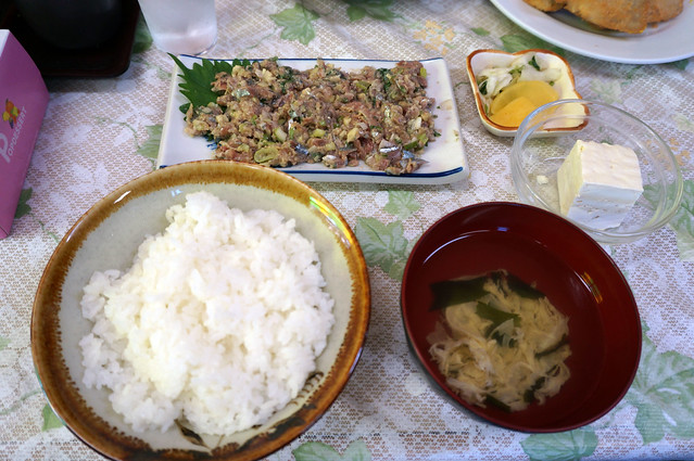 これまた新鮮!実はこの翌日にスーパーで買ってきた「さんまの刺身」を食べたのですが、それしか食べなければそんなものかと思うのですが、さすが漁港の近くで食べるなめろうは格が違いましたね。さんまの甘みと味噌の塩味が一体となって、ご飯が進みます。もちろんご飯はお替わり!です。「孤独のグルメ」に取り上げられる店は、さすが外れないなぁ。