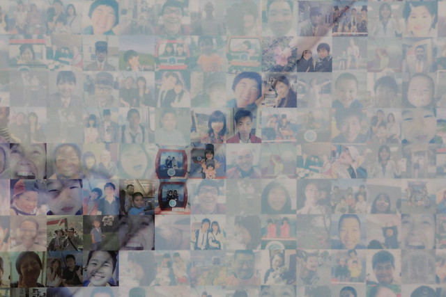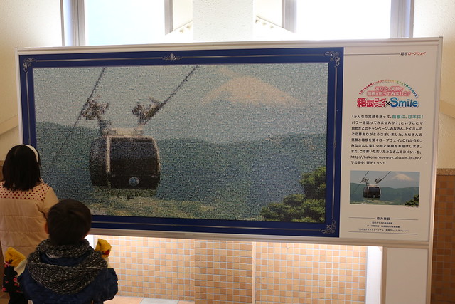さて、タマゴも食べたし、ロープウエーで芦ノ湖方面に降ります。お、これは大勢の顔写真で作るアートですね…? 近づいてみると…