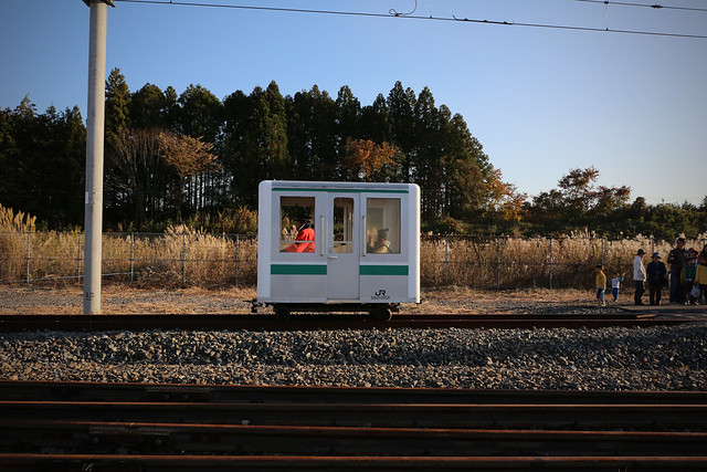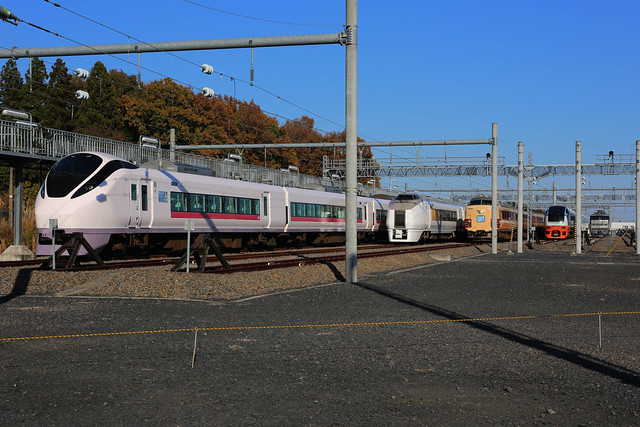 常磐線の内原駅と友部駅の間に、上下線が2手に分かれるところがあるんですよ。前々からそこ(特に2手に分かれた線路の内側)に行きたいなぁと思っていたんですが、土地の一部を保有するJRが特急ひたち号 50 周年記念イベント第 3 弾!!「みと鉄道ふれあいまつり」にて解放するというので、行ってきました。11/23(土)のことです。