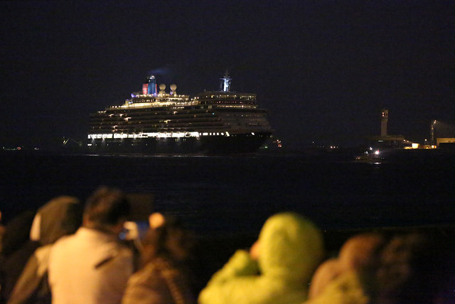 目の前を通過するそれは、まるで巨大なホテルがそのまま海上を横滑りしているよう。人類はよくもまぁこのようなものを作れるに至ったものだと、感慨深くなります。観客からも驚嘆ともため息ともとれる声が上がります。