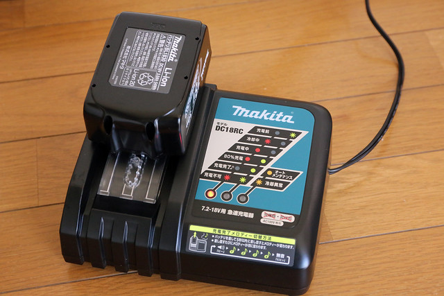 本製品のリチウムイオンバッテリーは、他のマキタ製品と共用になっているようだ。今回は本体+電池+充電器のセット品を購入したが、充電器やバッテリーは既に持っているというユーザーのために、それぞれのばら売りもされている。