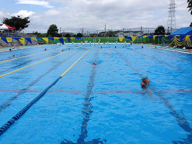 一方で、併設されている大人用のプールはご覧の通り、超快適。ただ、こちらのプールは本気の大人用なので、立ち止まったり、ちんたら泳ぐのは許されません(笑。試しに一度だけ泳いでみましたが、手足がのびのびと伸ばせるのは芋洗いでは得られない感覚。とても気分が良いですが、泳いでも泳いでもゴールに着きません…なんでゴールが近づかないんだ…と思ってたら、ここ片道50mプールじゃないですか!(;´Д`) いやぁ25mではなく50mプールで泳ぐのは初めての体験なので、こんなにゴールが遠いとは…。往復すると100mですからね。一往復でヘトヘトになりました。水深も1.5mあるので、なかなかの大人仕様です。でも来年も1回くらいは泳ごう…。