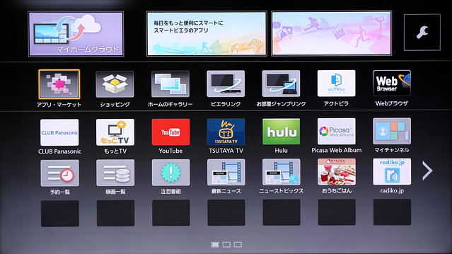 ただ、このリモコンの面白いところは、マイクが内蔵されていて、音声で操作が可能な点です。しかもテレビをインターネットに接続すると、認識できる語彙が増えるという。つまりiPhoneのSiriさんみたいにサーバーを使ってるんですね。テレビ本体に無線LAN子機が内蔵されているので、すでに無線LAN親機がある家だったらネット接続は苦になりません。ただ、我が家ではしばらくテレビでのネット機能を使わないでいると、ネット接続設定を再度要求されるという謎症状が発生しています。仕様なのかなぁ?