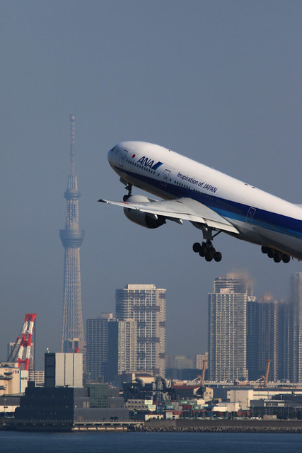 羽田空港第二ターミナル展望デッキより。スカイツリーとの距離感は難しいところだが、これもまた連写速度がモノを言う。