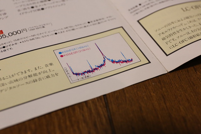 ここでも、「スーパーバイアス」という、テープの録再につかうバイアス電流の周波数を2倍にすることで歪率を下げる技術の効果が波形で示されている。歪率なのでノイズとは違うが、新旧2つの波形が関心のない人から見れば大差ないように見えるという点では同じだ。オーディオの世界で少しでも理想の音に到達したいという願いは、昔からこういう本当に微妙な波形の差にすがって来たのは事実だ。