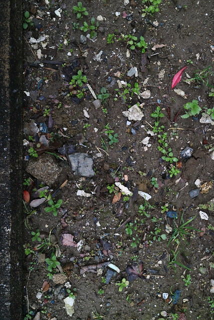 ウッドデッキとコンクリート敷きの間には少しだけ土が露出している部分があるのだが、ここの産業廃棄物的な汚れもひどい。コンクリートの破片とか、ガラスの破片とか、塗料の塊とかが落ちている。ここはひたすら、時間を見つけてごみ拾いするしかないのかな…。