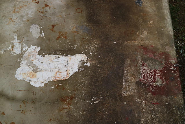 もう一箇所何とかしたいのが、駐車場からの地続きのコンクリート部のペンキ汚れ。前のオーナーさんが塗装業者だったので、ペンキを保管していたであろう場所のコンクリート敷きのペンキ汚れがひどい。市販の「ペンキはがし薬剤」を試してみたが、確かに落ちるのだが、2千円ほどかかってA4サイズくらいの面積しか落とせなかった。これも前のオーナーさんとは別の塗装業者に相談してみたのだが、表面を研磨するだけで大丈夫な筈なので4万円弱ほどで施工可能、との見積もりが来た。その後「日程の調整は後日」という連絡が来てから、その後一向に日程調整の連絡が来なくなった。やっぱり4万円弱のような細かい仕事は嫌がられるんだろうなぁ。これは自分でディスクグラインダー買ってきてやるしかないかな…。