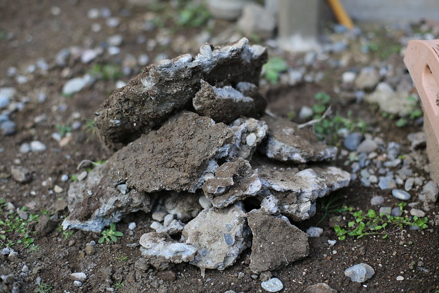 なぜか纏まった大きさのコンクリートの層も出てきた。きちんとした形ではなく、まるで液体のコンクリートをこぼしてしまい、その上から土を被せてしまったような形状だった。