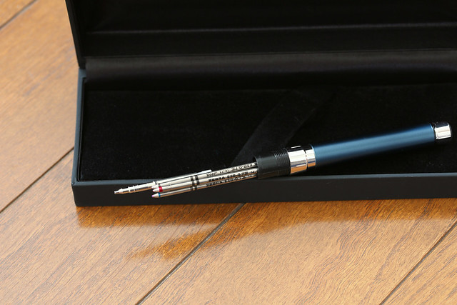 軸はシャープ+ボールペンが3色入ります。無難に0.5mmシャープメカ+エマルジョン黒+エマルジョン赤+ノーマル緑を選択。