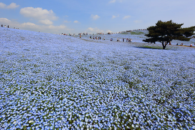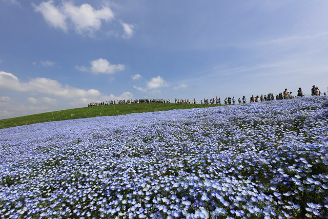 国営ひたち海浜公園の「みはらしの丘」を観に行ってきました。4月下旬から5月下旬にかけて見られる空の色と溶け合うような一面ブルーの景色は、報道などで見たことがある方も多いかと思います。ひたち海浜公園は真夏のロックの祭典「ロック・イン・ジャパン・フェスティバル(RIJF)」の会場としてご存じの方も多いかも知れませんね。