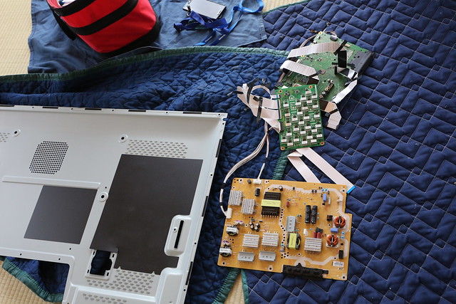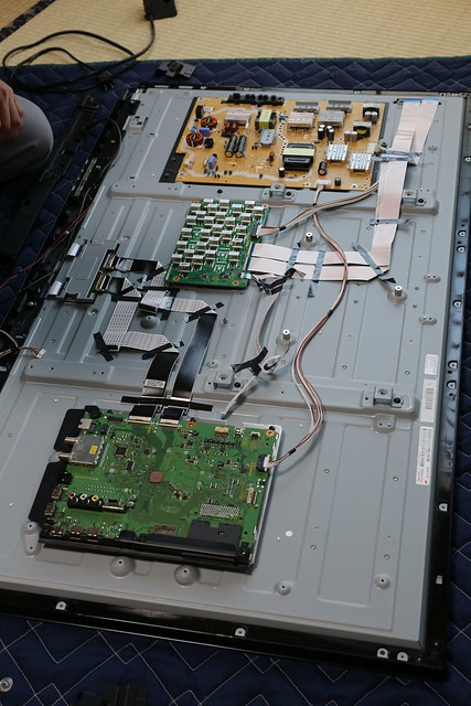 不具合を起こしたパネルを取り外したところ。テレビのアイデンティティって何なんでしょうね…?