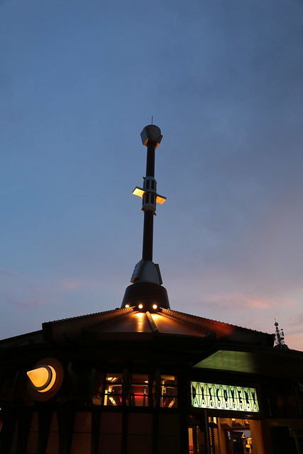 ポートディスカバリーの中央付近にある売店。屋根の上で巨大なオブジェ(風車という設定だったらしい)が三次元的にグルグルと回っていたはずですが…ありません。え?なんで?廃止されてしまったのでしょうか。