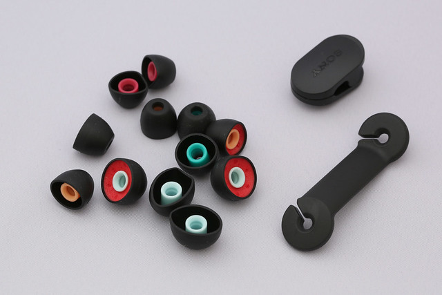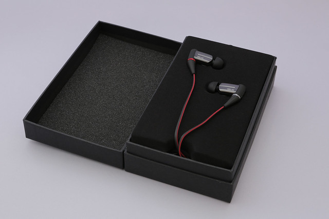付属品。イヤーピースの通常タイプとウレタンフォームタイプのそれぞれサイズ別。ケーブルの長さを調節するワインダーと、ケーブルクリップです。イヤーピースの通常タイプが付属ポーチに入った状態だったのに対して、ウレタンフォームの方は箱に入っていました。この扱いの差は何なんだぜ?(仕向地の問題かなぁ?)