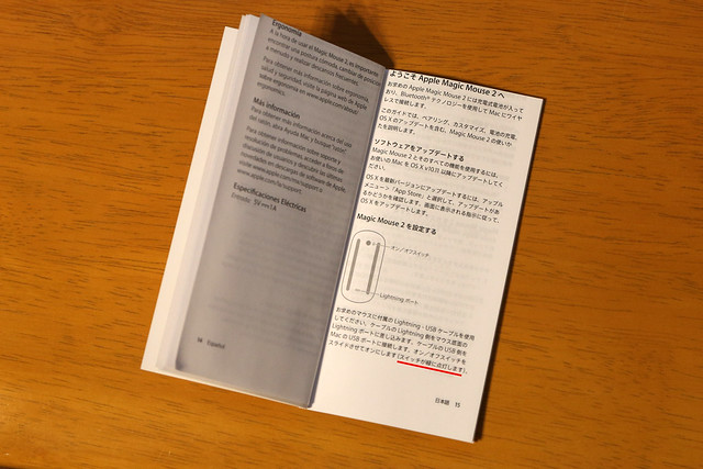 また、センサーが奥まっている個体とそうでない個体があるのは健在なようで、私が購入した個体はエアーパッドソール for Magic Mouseを貼ってしまうと、マウスカーソルがまともに動きませんでした。ただし重量が軽くなったせいか、ソールを貼らなくても従来のMagic Mouseより動きが軽く、静音です。