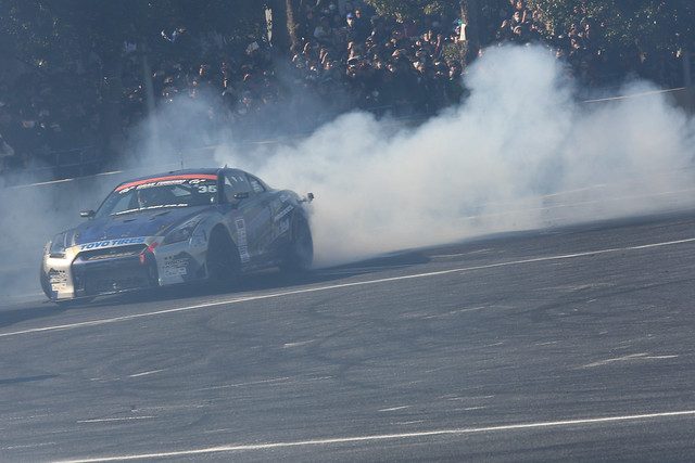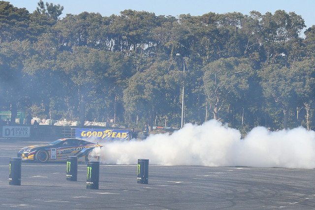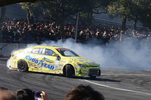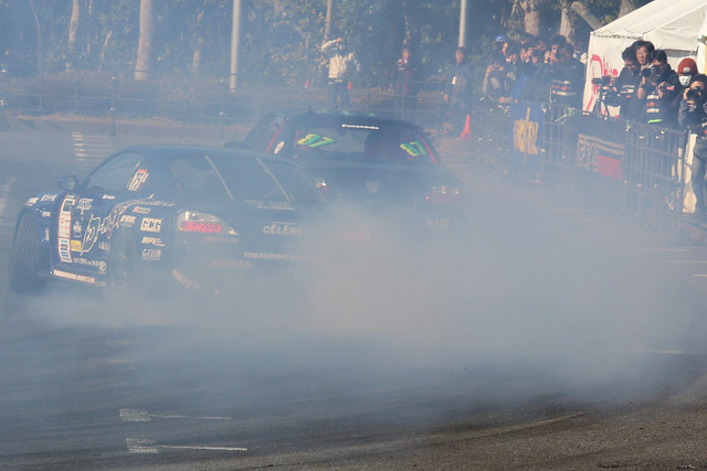 さて、目玉の一つ、屋外での「D1GP Kick Off Drift」です。「D1GP」というイベントのデモンストレーションのようなものです。