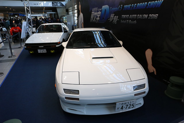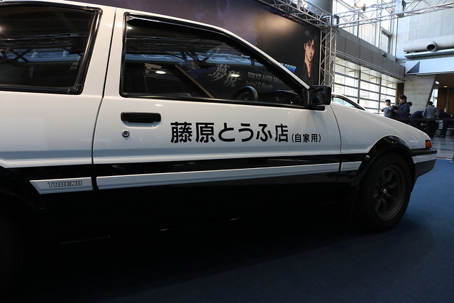 イニシャルDも劇場版最終章に合わせての展示。ナンバープレートまで再現。イニシャルDに関連するブースをスタンプラリーでコンプリートすると、実物大「藤原とうふ店(自家用)」ステッカーがもらえるイベントをやっていました。但しステッカーは文字がなぜかピンクだったのが惜しい。なぜ黒で作らなかった…。