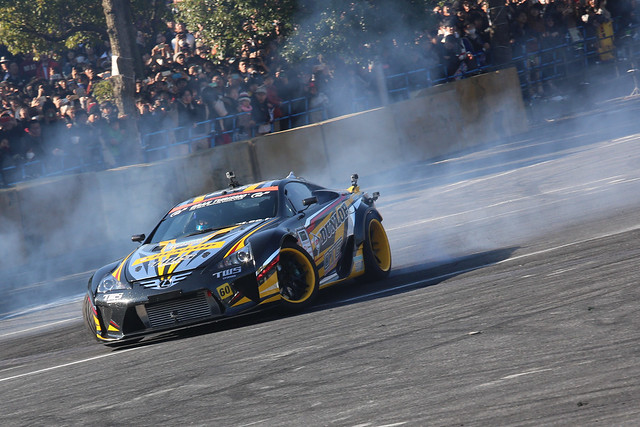 またご覧の通りドリフトに伴う白煙がすごいので、画面のコントラストが低いように見えますが、ここでPhotoshopの「かすみを除去」してしまうとこれに限って言えば意味がないと思うので(笑 トリミングだけして煙はそのままで掲載します。