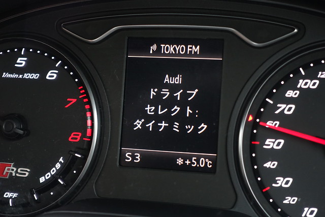 「ドライブセレクトをダイナミックにするとRS3になりますから。コンフォートだと普通のA3ですから」とセールス氏に説明されて、いざ公道経由・高速道路へゴー。