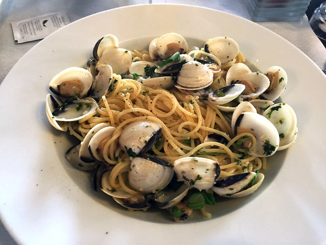 さて、ブルージュも満喫したし、そろそろお腹が空いたので、少し海の方に移動してシーフードを食べたいなと、近くのオーステンデという街に来ました。まるで葉山のヨットハーバーみたいな場所沿いにある適当なレストランに入りました。とはいえメニューがオランダ語で何が書いてあるのか全く不明なのであまり凝ったものが頼めず、google翻訳(便利だー)と格闘して日本でもお馴染みのボンゴレに。