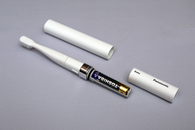 乾電池1本駆動なので家庭用のドルツと比べるともちろんパワーは控えめですが、それでも普通の歯ブラシよりは効率的に磨けます。重量なども勘案すると、持ち歩き用として悪くありません。