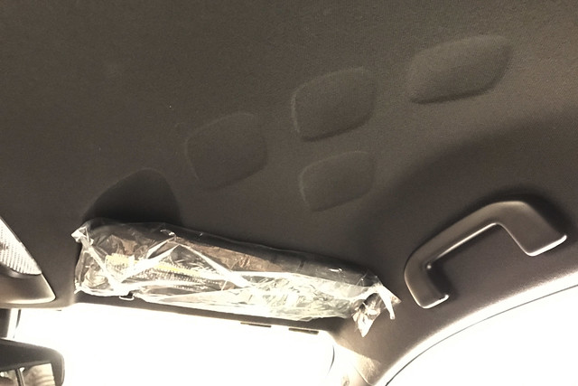 前席頭上に謎のエンボス加工が。こういうこともできるんですよ、という誇示でしょうか。機能的に何か意味があるようには見えません。