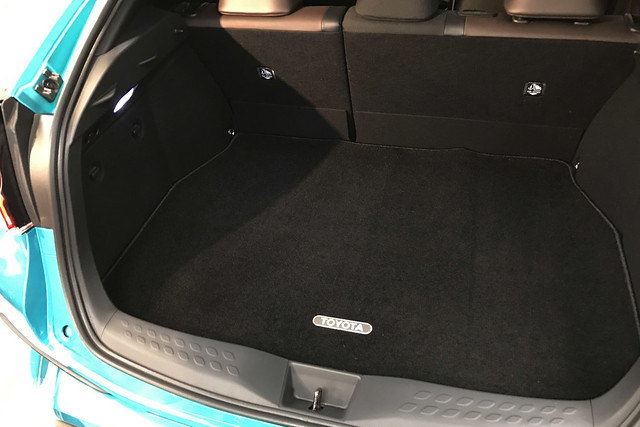 荷物室は上下に狭いです。床はこれ以上は下がりません(床下にスペアタイヤが入っています)。見た感じマツダCX-3よりは多少積めるかなといった程度で、インプレッサやVWゴルフの方が荷物は積めそうです。
