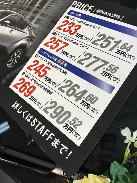 買い物に行ったらトヨタのC-HRが置いてあったのでチェックしてみました。
