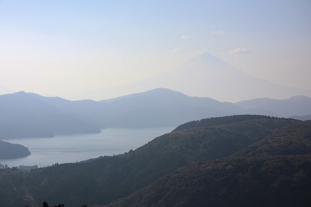 肉眼ではほとんど見えなかった富士山ですが、撮ったカットにPhotoshopの「かすみの除去」フィルターをうっすらと掛けたところ、富士山が浮き出てきました。あまりやると空にバンディングノイズが見えてしまうので、かけ過ぎないのがポイント。