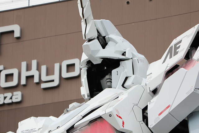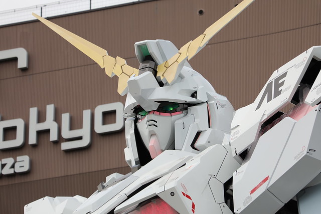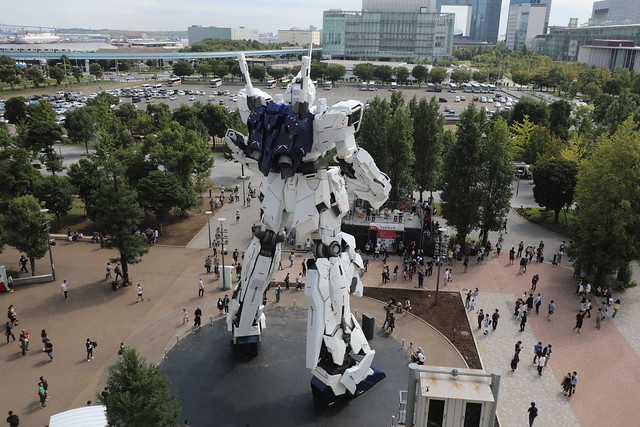 ガンダムの後ろに建っている「ダイバーシティ東京 プラザ」の6Fにあるレストラン「アポロ」からのガンダムです。