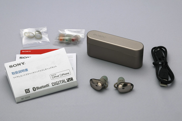 さてWF-1000Xですが、この分野では後発だけあってノイズキャンセリング付きというかなり欲張った仕様です。最近のソニーのイヤホンやヘッドホンに好印象しか持っていないので、試聴せずに買いました。
