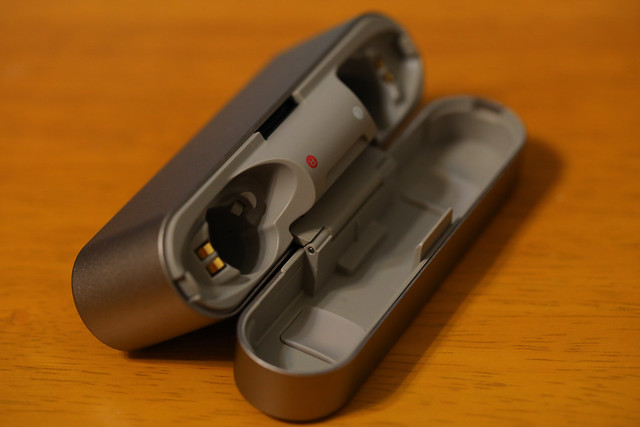 あと宜しくないのが充電機能付きケースの重量バランス。フタ部分はそんなに重くないと思うのですが、机上でフタを開けた状態で置こうとするとすぐ転倒してしまいます。もうちょっと本体側は重くても良かったのでは。