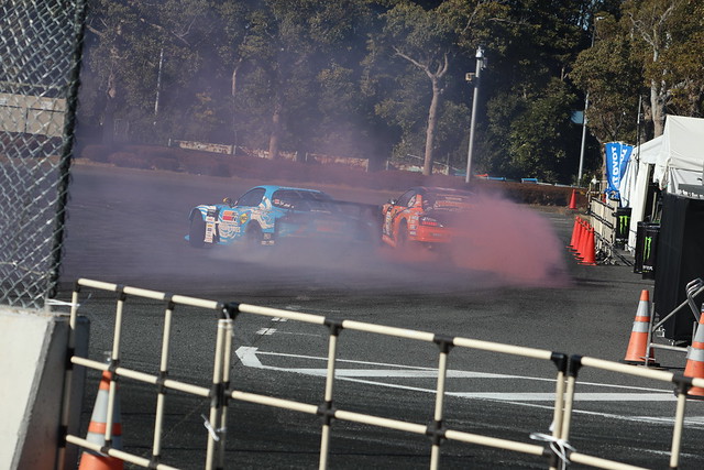 ムスコ的にはこれ目的ですけどね。ドリフトイベントは悲惨な事故も起きるせいか、今回は防護壁がかなり厳重でした。ドライバー的にはさほど危険度の高い技を繰り出しているわけはないようなんですが、事故はハブ破断とかドライバーが意図しないところで起きますからね。