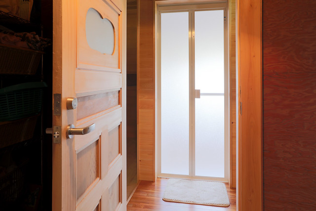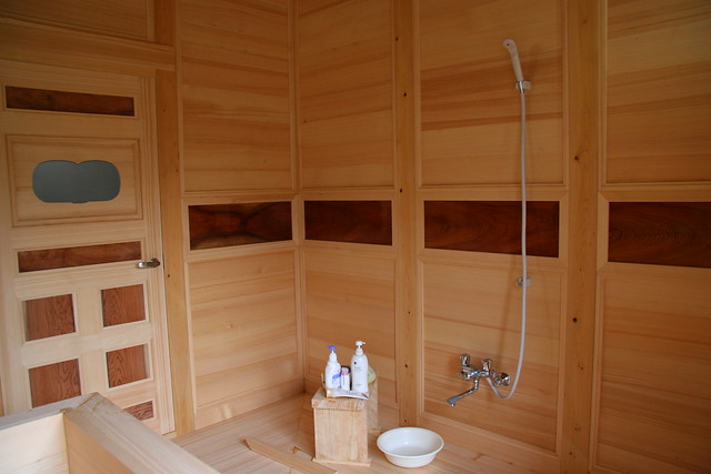 床の傾斜が足りなかったのが致命的で、とにかく入浴後の水切りが大変でした。無垢の檜、しかも無塗装なので毎日入浴後にきちんと水切りをして雑巾で拭き上げ(!)までしないと、腐ってしまうのです。「ビフォー・アフター」に出てくる問題の多い家を積極的に作り込んでしまったような感じです。