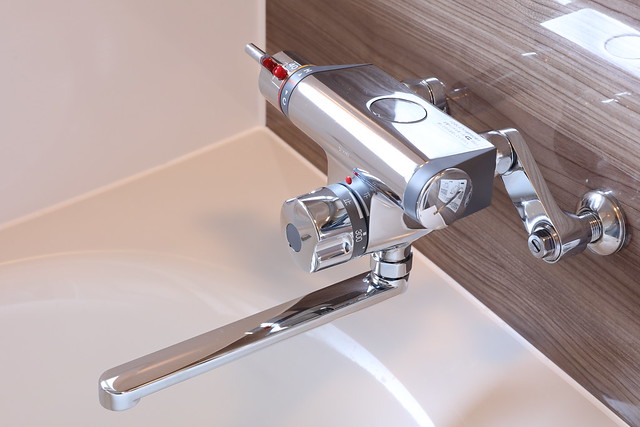 費用を抑えるために追い焚き工事は入れなかったのですが、それでも指定されたリットル数の湯が入ると勝手に止まる水栓が装備されていました。こんな便利なのがあるんですね…。