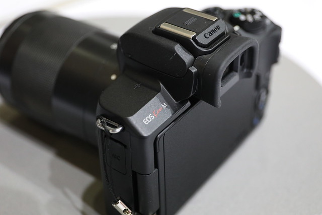 EOS Kiss M。単にKissの名を付けたEOS Mとも言いますが、同社の看板ブランドであるKissの名をようやく冠せたというのは、マーケティング面で様々な議論があったとは思いますが、世間様に対するメッセージとしては大きいものがあると思います。この左側肩に何も操作系が配置されていないのも潔い感じです(そういえばソニーα7 IIIも左肩に何もなかった…)。