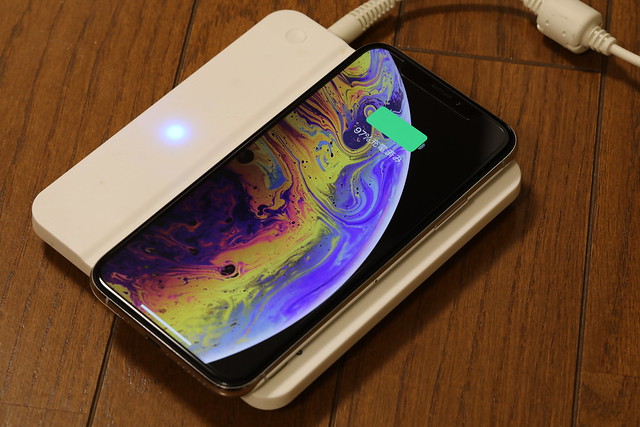 qi規格の非接触充電ですが、手元にあった2012年製の docomo のワイヤレスチャージャーF02が使えました。ただこれは、ACアダプタ含めて場所を取るので常用はしないと思います。