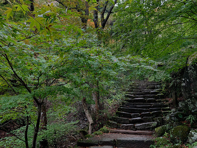 ツマが山の空気を空いたと言うので、8月に富士山で肉離れを起こした左足のリハビリを兼ねて、軽く登ってきました。7月に練習登山して以来ですが、今回は頂上(1,252m)を目指すのではなく、ケーブルカーの代わりに歩くコース。すなわち駐車場のあたり(標高約310m)から大山阿夫利神社下社(標高725m)を目指すものです。所要時間は速い人だと40分程度。