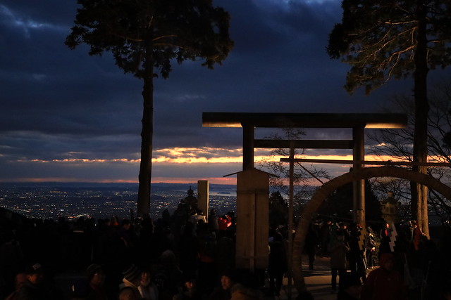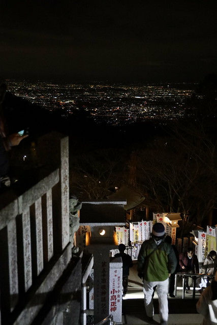 ケーブルカーを降りて、大山阿夫利神社(下社)の境内まで来たところ。まだ夜景です。寝坊したくせにスムースに駐車できたので、日の出まであと1時間あります。